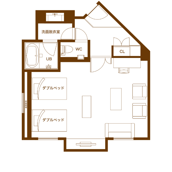 | ●利用人数 | 2~5名 3~5名利用時はトランドル・エキストラベッド使用 |